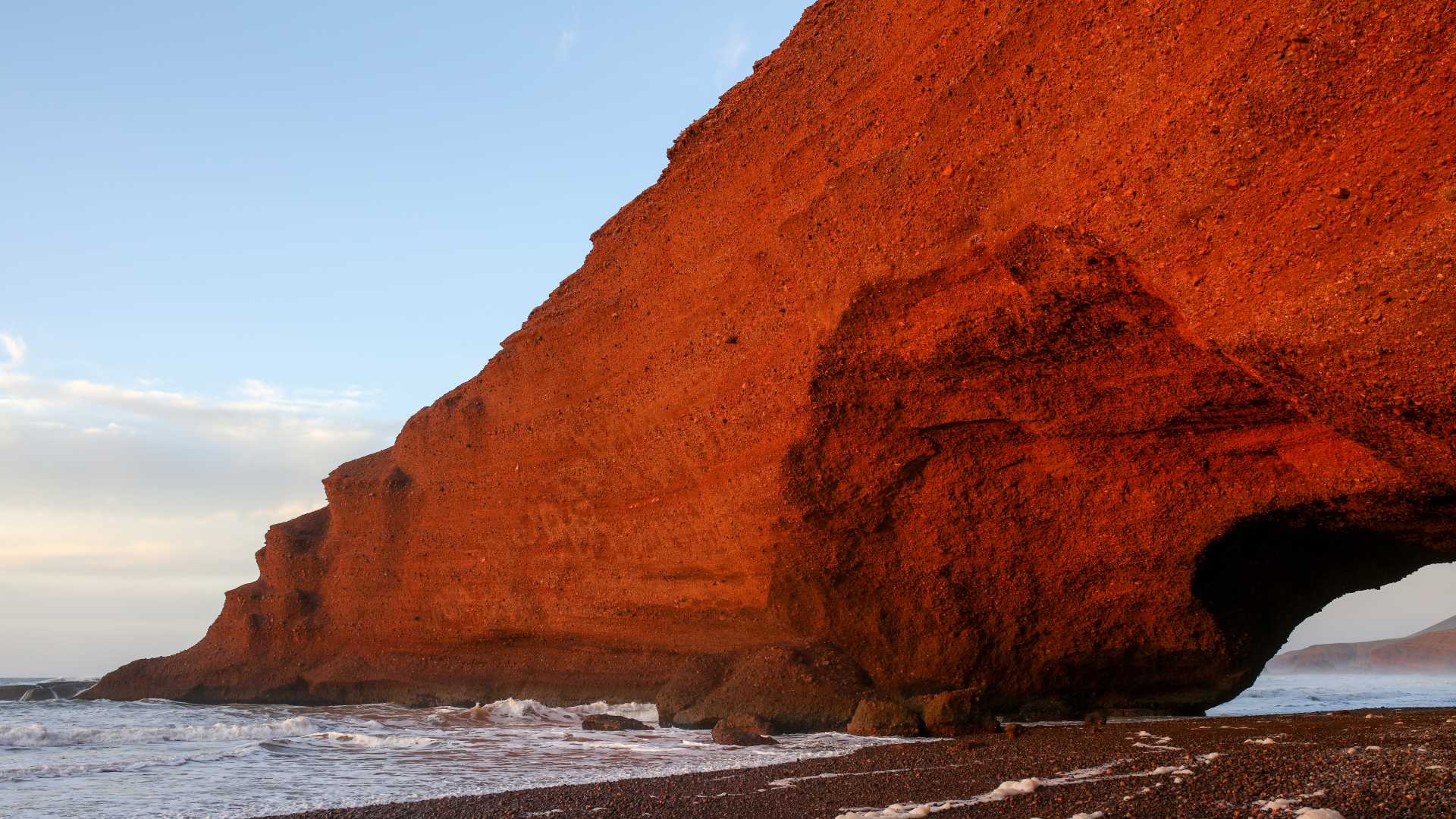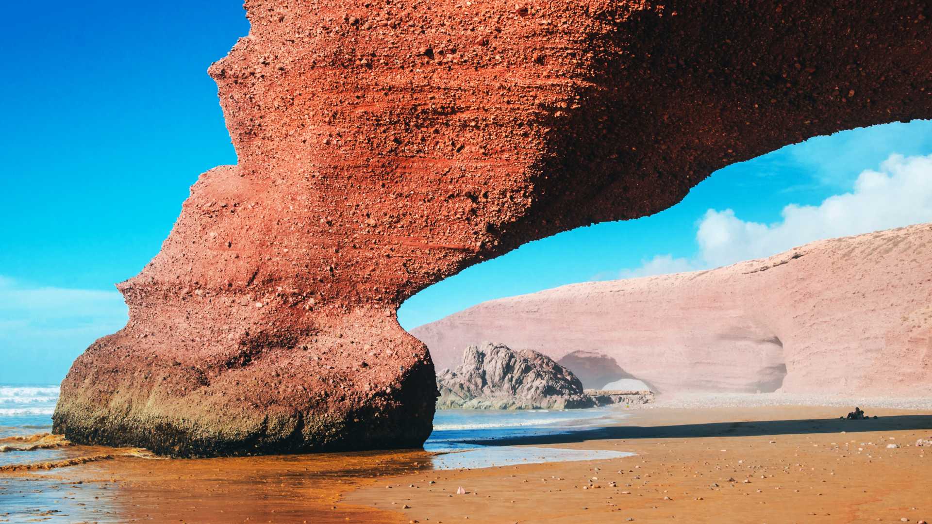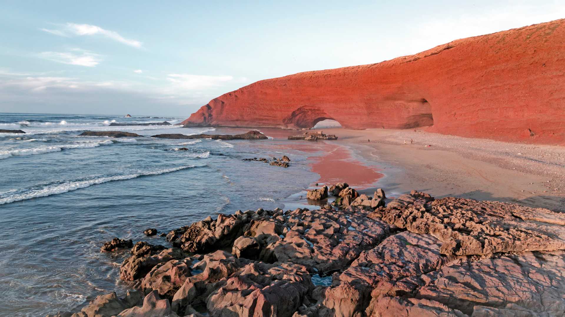 ◾Découvrez les étonnantes falaises rouges et les magnifiques arches naturelles de la plage de Legzira.